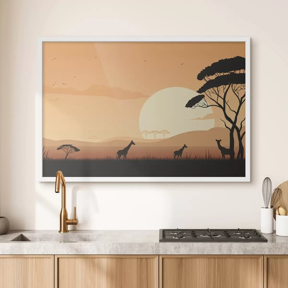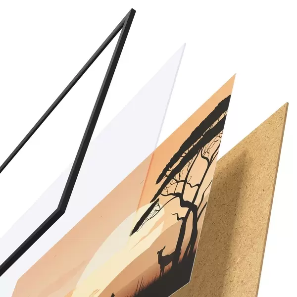 Das Poster besteht aus einem Rahmen, Plexiglas, einem gedruckten Bild und einer Rückwand aus Spanplatten. Dank der Halterungen auf der Rückseite kann das Poster sofort an die Wand gehängt werden.