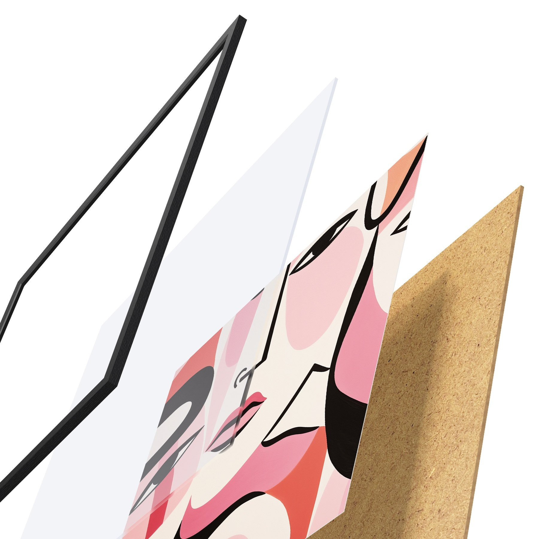 Das Poster besteht aus einem Rahmen, Plexiglas, einem gedruckten Bild und einer Rückwand aus Spanplatten. Dank der Halterungen auf der Rückseite kann das Poster sofort an die Wand gehängt werden.