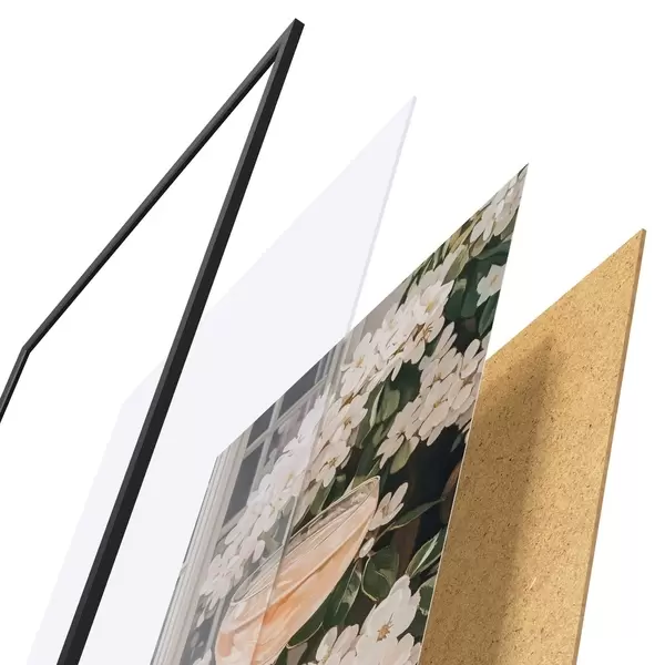 Das Poster besteht aus einem Rahmen, Plexiglas, einem gedruckten Bild und einer Rückwand aus Spanplatten. Dank der Halterungen auf der Rückseite kann das Poster sofort an die Wand gehängt werden.