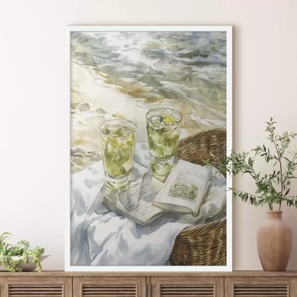 Poster Picknick am Meer, Sommercocktails, Poesie, Aquarellstil Nr f43068