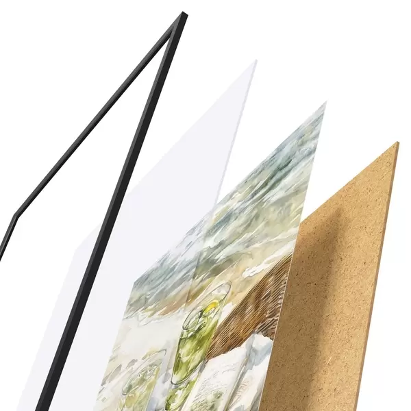 Das Poster besteht aus einem Rahmen, Plexiglas, einem gedruckten Bild und einer Rückwand aus Spanplatten. Dank der Halterungen auf der Rückseite kann das Poster sofort an die Wand gehängt werden.