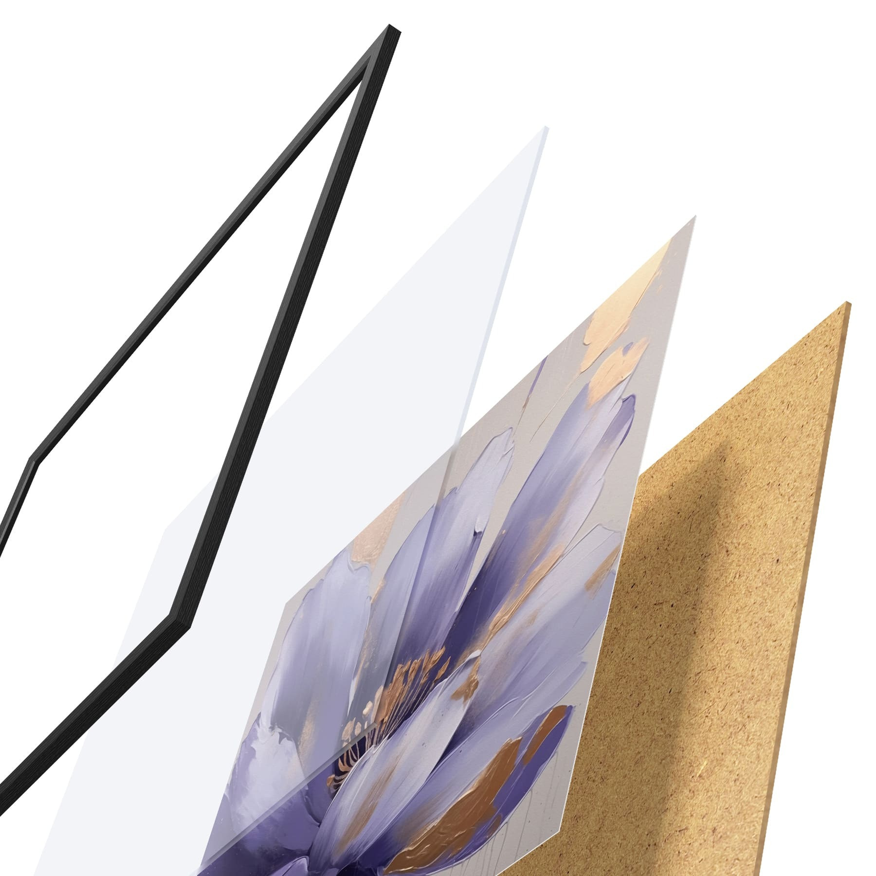 Das Poster besteht aus einem Rahmen, Plexiglas, einem gedruckten Bild und einer Rückwand aus Spanplatten. Dank der Halterungen auf der Rückseite kann das Poster sofort an die Wand gehängt werden.