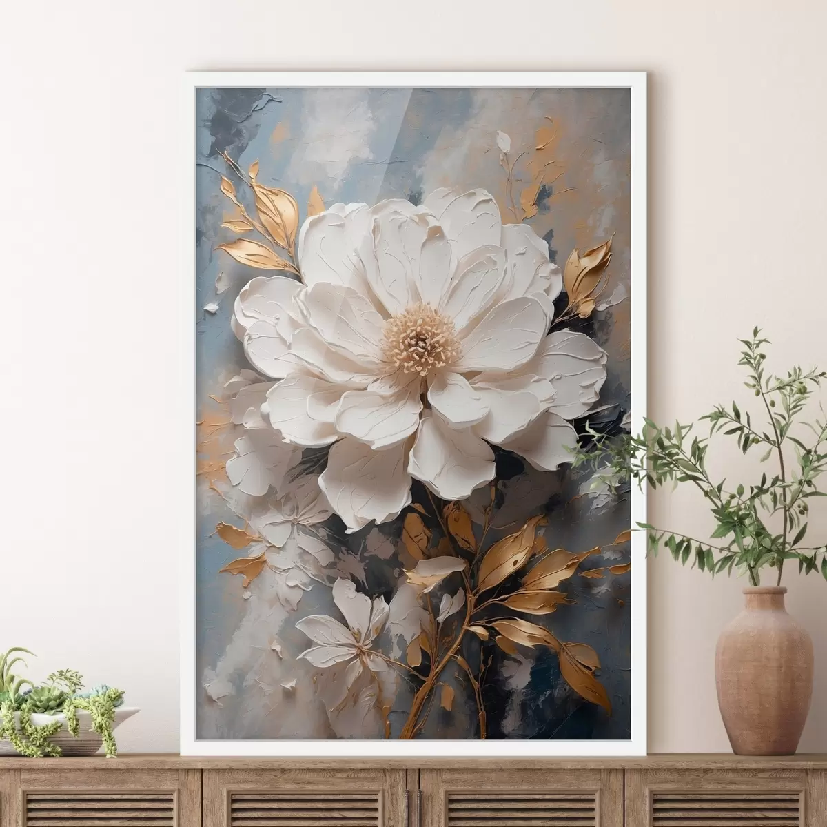 Poster weiße Blume f43090