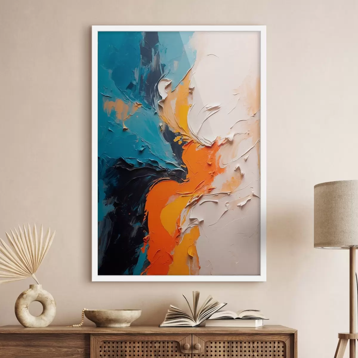 Poster Abstrakte Malerei in Ölmalerei Stil mit orange, blau und weißen Farben Nr f43094
