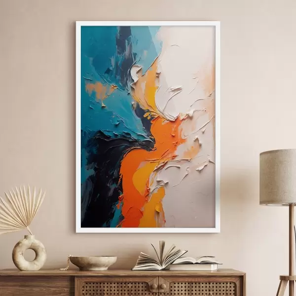 Poster Abstrakte Malerei in Ölmalerei Stil mit orange, blau und weißen Farben f43094