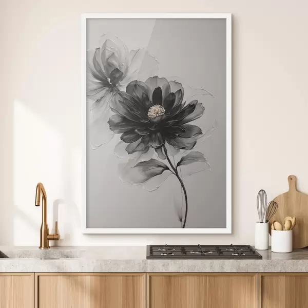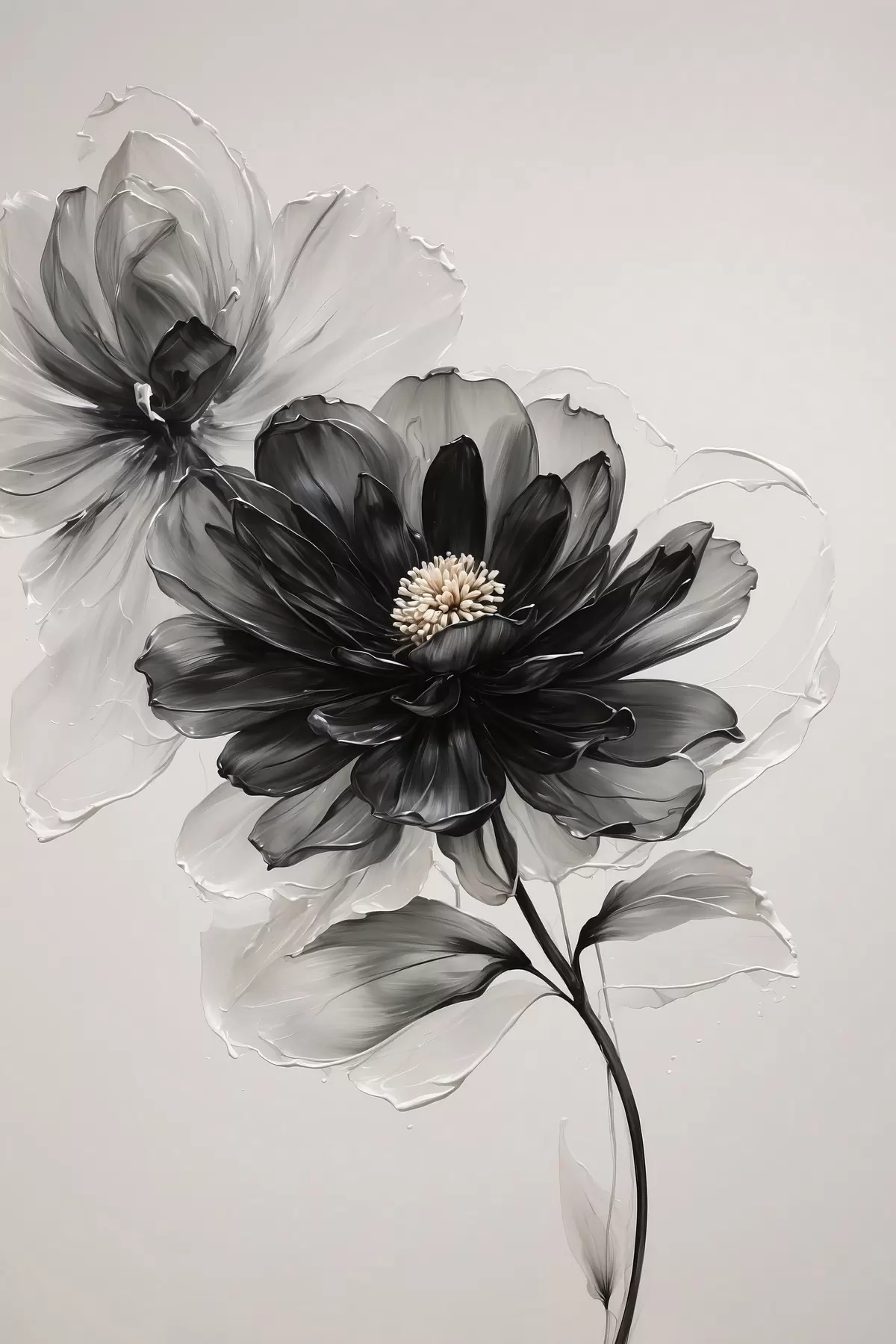 Poster Schwarze transparente Blume auf weißem Hintergrund Nr f43099
