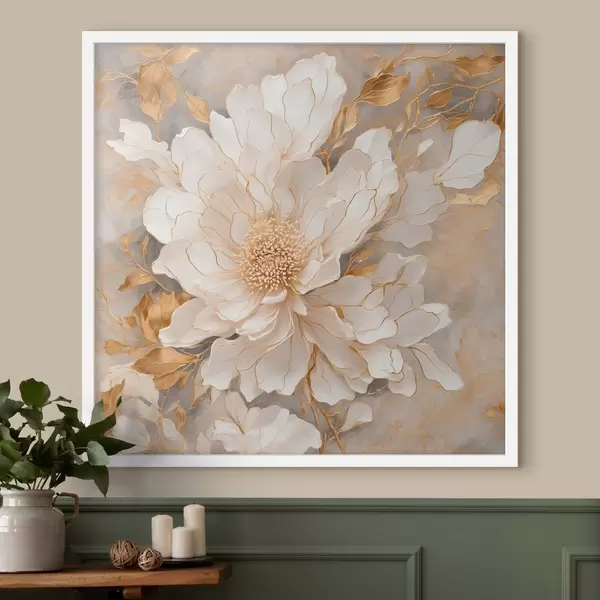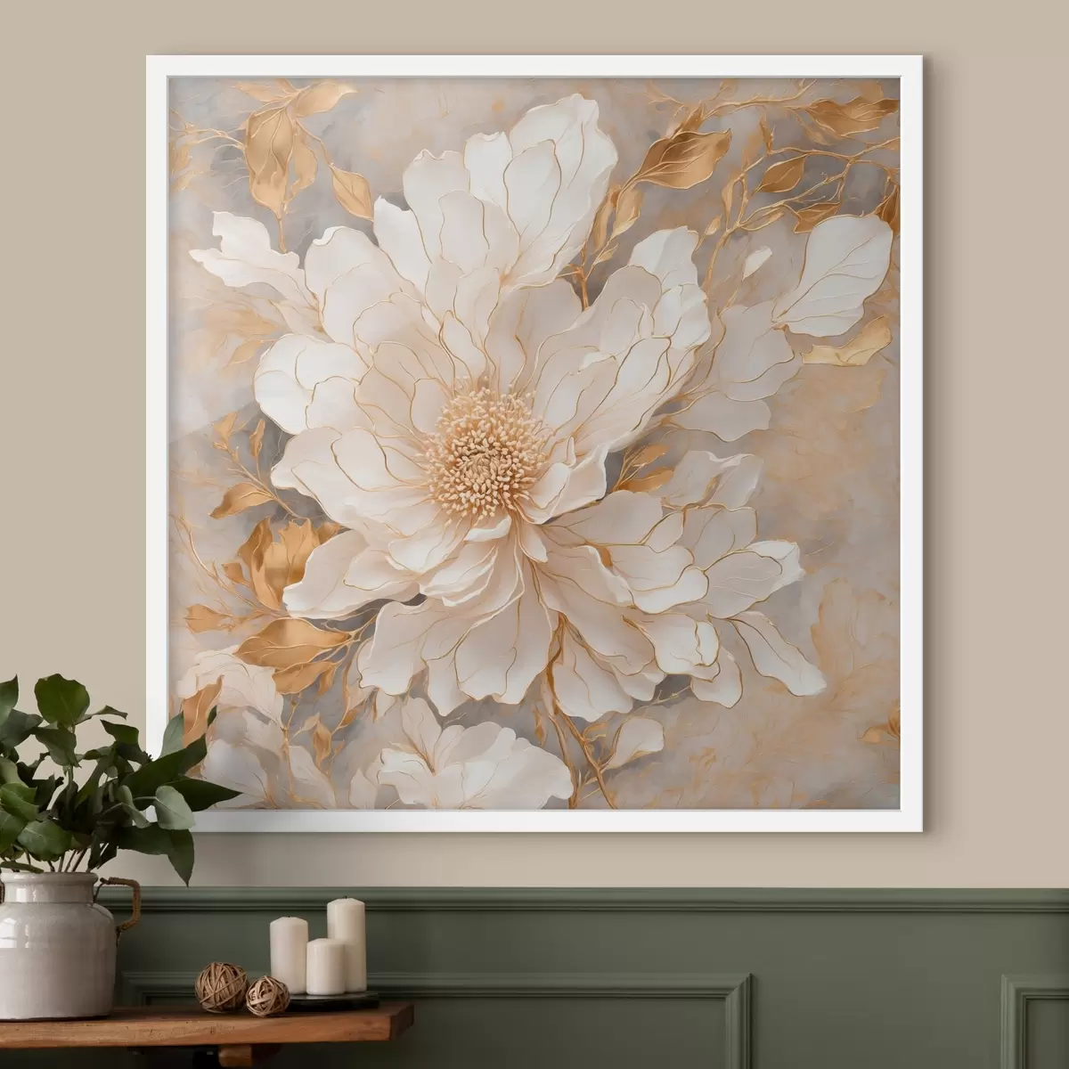 Poster Weiße Blume mit Blättern in Acrylmalerei Stil Nr f43115