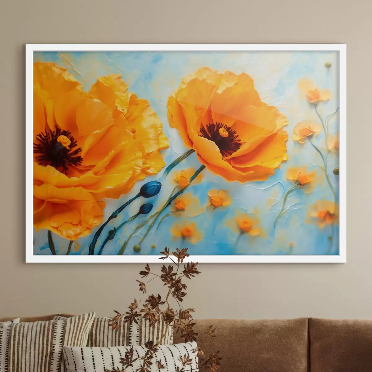 Poster Gelbe Mohnblumen auf unscharfem Hintergrund Nr f43118