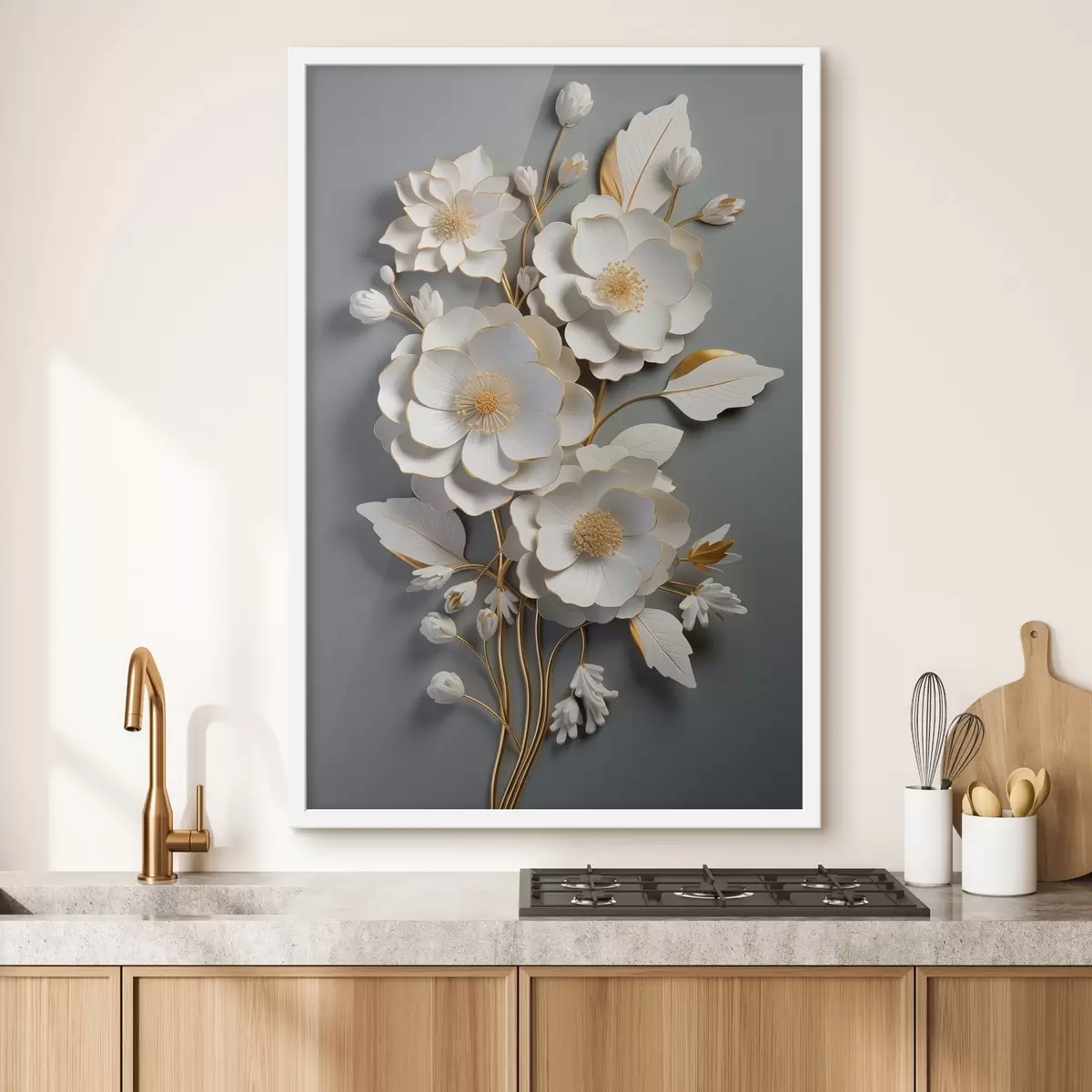 Poster Volumetrische Blumen auf grauem Hintergrund Nr f43128