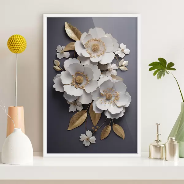 Poster Drei weiße Blumen auf dunklem Hintergrund Nr f43129