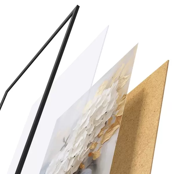 Das Poster besteht aus einem Rahmen, Plexiglas, einem gedruckten Bild und einer Rückwand aus Spanplatten. Dank der Halterungen auf der Rückseite kann das Poster sofort an die Wand gehängt werden.
