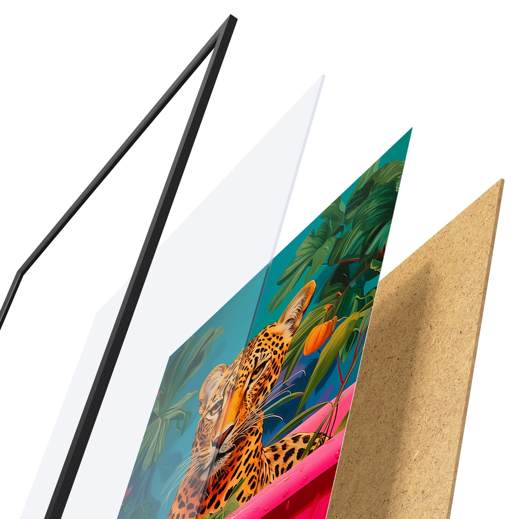 Poster Ein Leopard in einer rosa Badewanne inmitten von exotischen Pflanzen Nr f43135