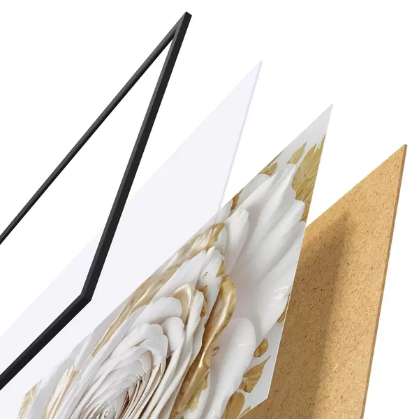 Das Poster besteht aus einem Rahmen, Plexiglas, einem gedruckten Bild und einer Rückwand aus Spanplatten. Dank der Halterungen auf der Rückseite kann das Poster sofort an die Wand gehängt werden.