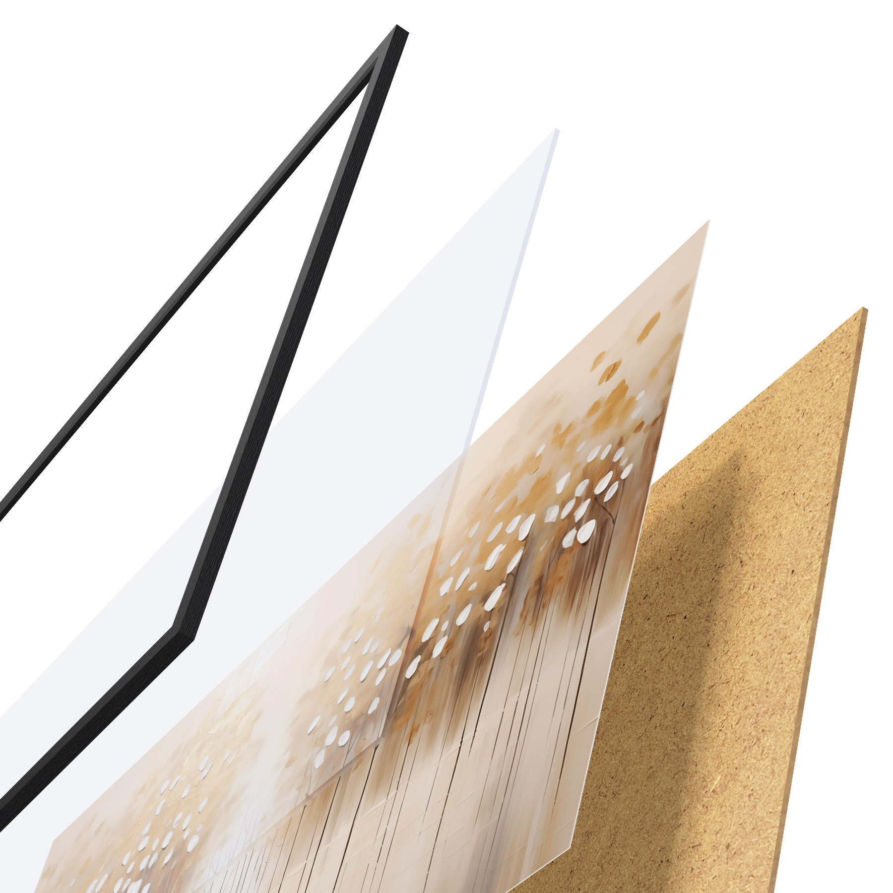 Das Poster besteht aus einem Rahmen, Plexiglas, einem gedruckten Bild und einer Rückwand aus Spanplatten. Dank der Halterungen auf der Rückseite kann das Poster sofort an die Wand gehängt werden.