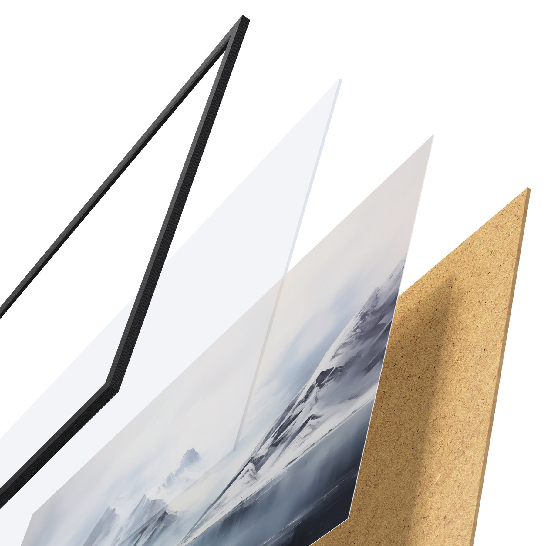 Das Poster besteht aus einem Rahmen, Plexiglas, einem gedruckten Bild und einer Rückwand aus Spanplatten. Dank der Halterungen auf der Rückseite kann das Poster sofort an die Wand gehängt werden.