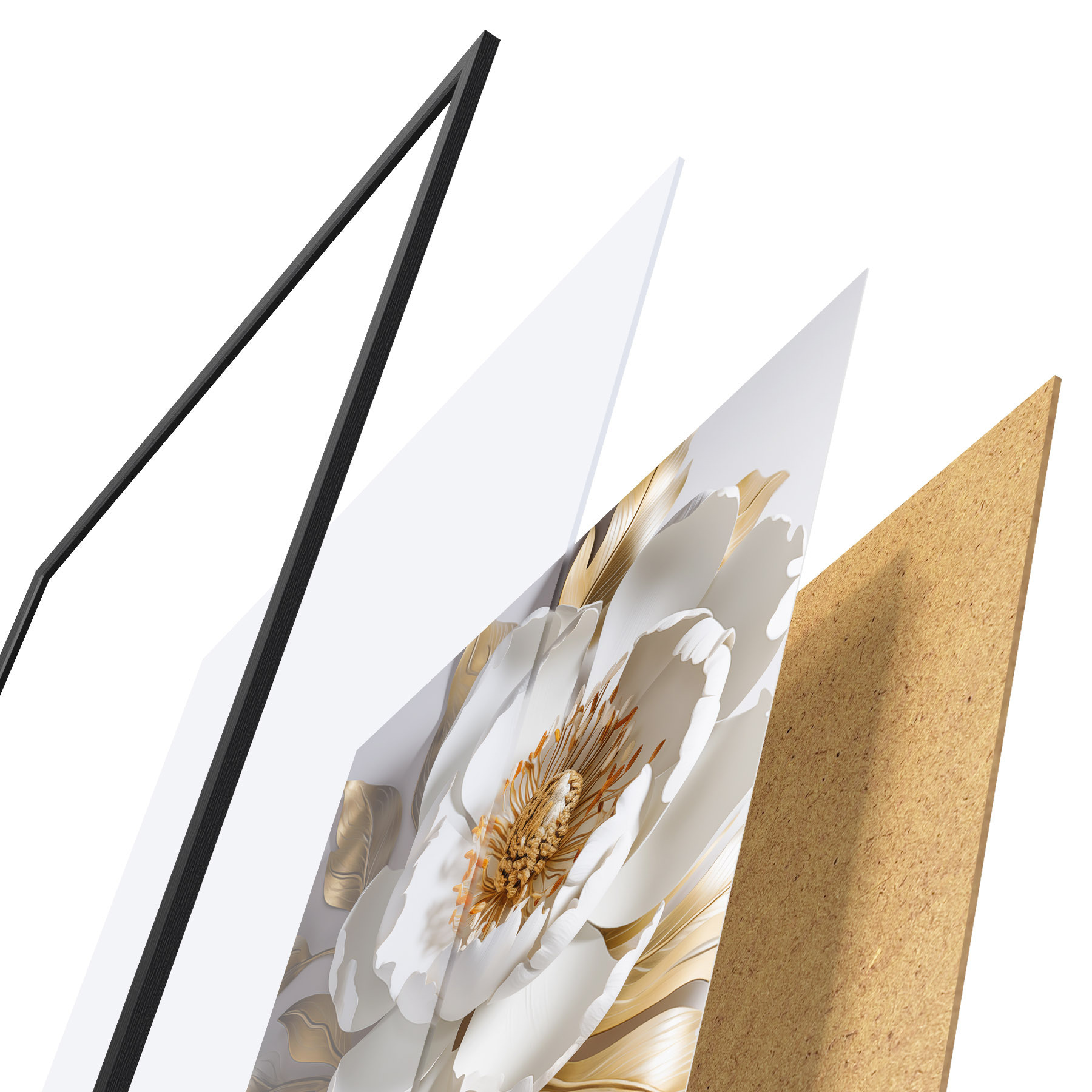 Das Poster besteht aus einem Rahmen, Plexiglas, einem gedruckten Bild und einer Rückwand aus Spanplatten. Dank der Halterungen auf der Rückseite kann das Poster sofort an die Wand gehängt werden.