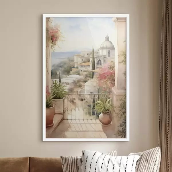 Poster Spanien Sommerlandschaft, mediterrane Architektur, Aquarellstil Nr f43181