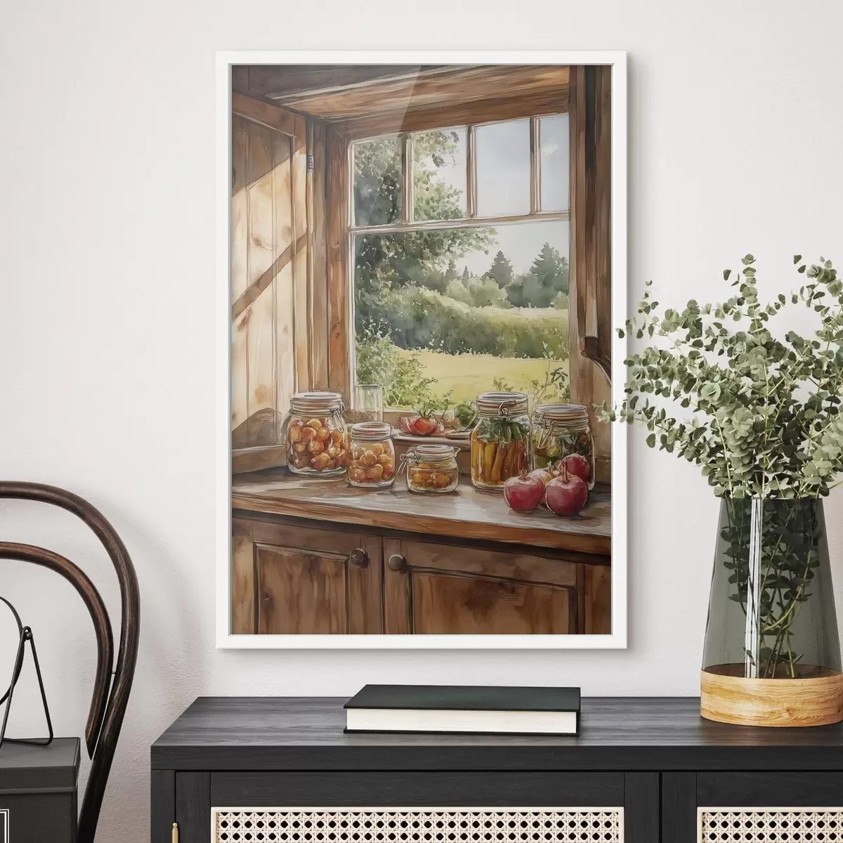 Poster Dorfästhetik, Holzhaus, Sommernatur, Gemüse, Aquarellstil f43185