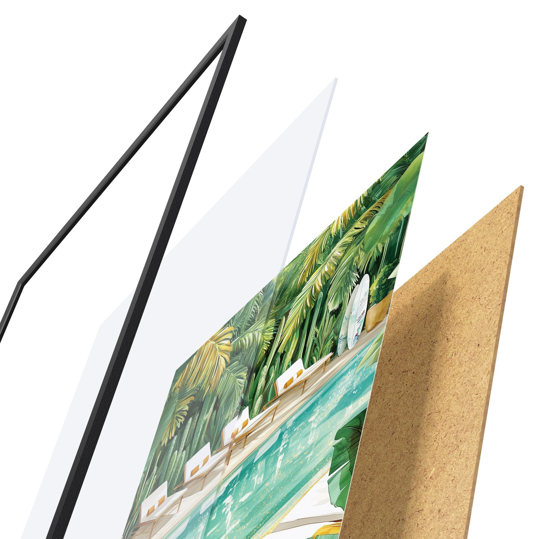 Poster Tropische Natur, Garten, Sommerpool, Surfen, Aquarellstil f43190