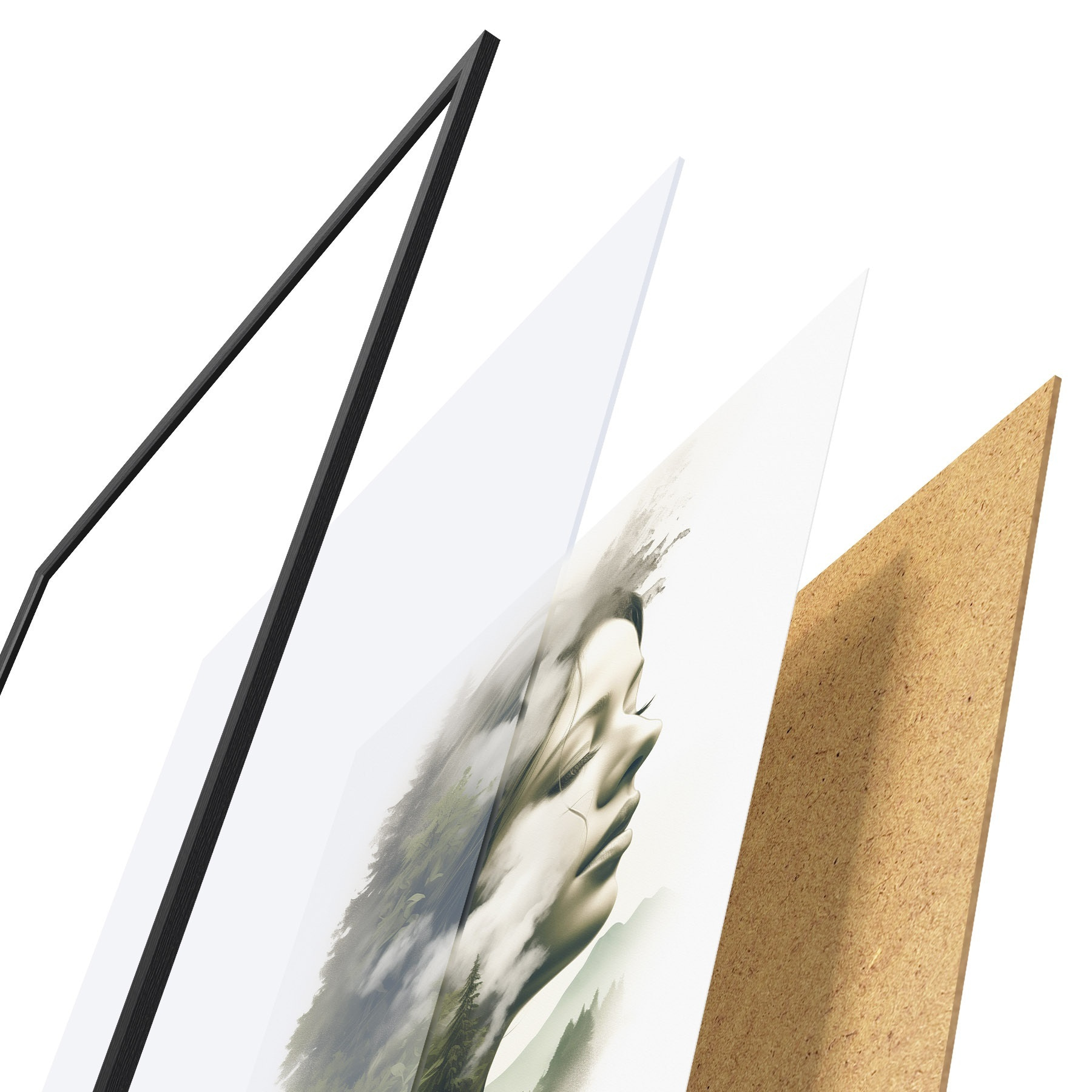 Das Poster besteht aus einem Rahmen, Plexiglas, einem gedruckten Bild und einer Rückwand aus Spanplatten. Dank der Halterungen auf der Rückseite kann das Poster sofort an die Wand gehängt werden.