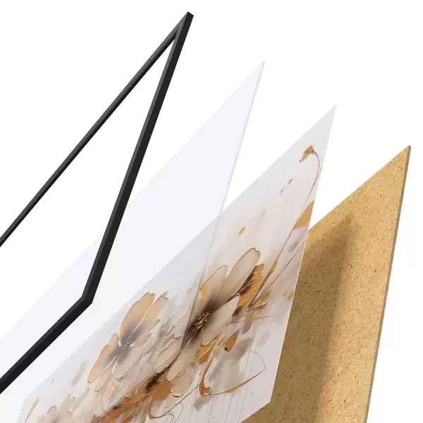 Das Poster besteht aus einem Rahmen, Plexiglas, einem gedruckten Bild und einer Rückwand aus Spanplatten. Dank der Halterungen auf der Rückseite kann das Poster sofort an die Wand gehängt werden.