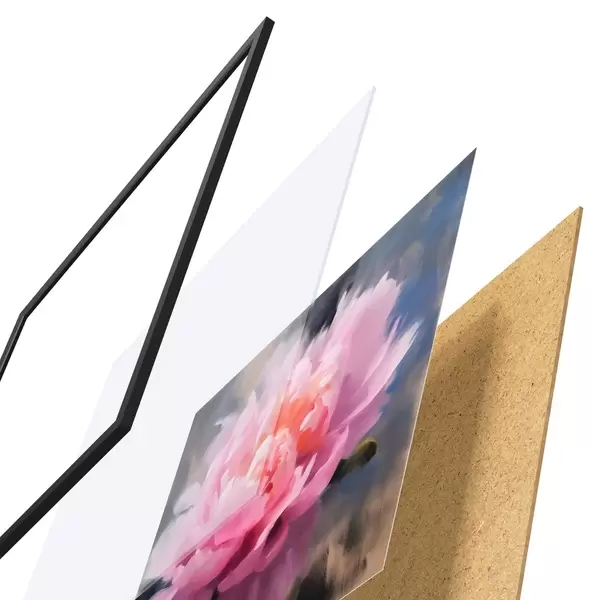 Das Poster besteht aus einem Rahmen, Plexiglas, einem gedruckten Bild und einer Rückwand aus Spanplatten. Dank der Halterungen auf der Rückseite kann das Poster sofort an die Wand gehängt werden.