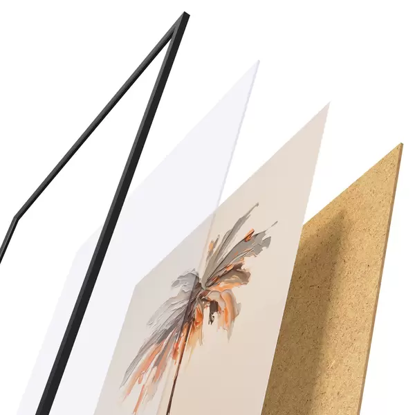 Das Poster besteht aus einem Rahmen, Plexiglas, einem gedruckten Bild und einer Rückwand aus Spanplatten. Dank der Halterungen auf der Rückseite kann das Poster sofort an die Wand gehängt werden.