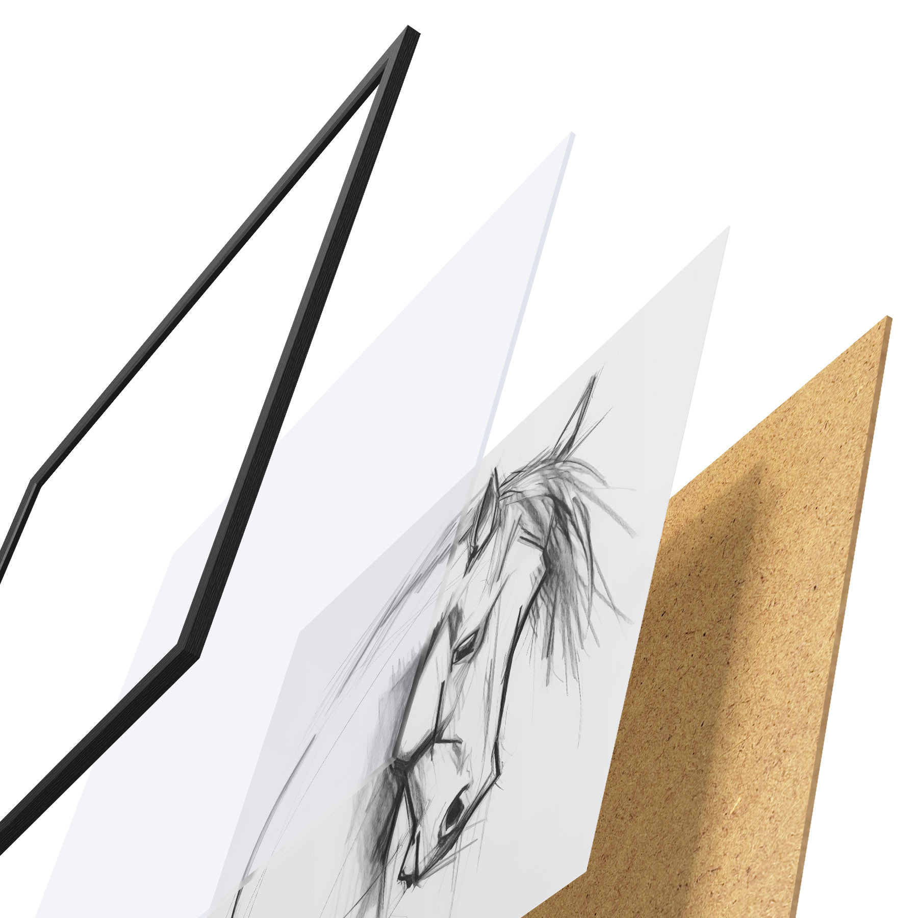 Das Poster besteht aus einem Rahmen, Plexiglas, einem gedruckten Bild und einer Rückwand aus Spanplatten. Dank der Halterungen auf der Rückseite kann das Poster sofort an die Wand gehängt werden.