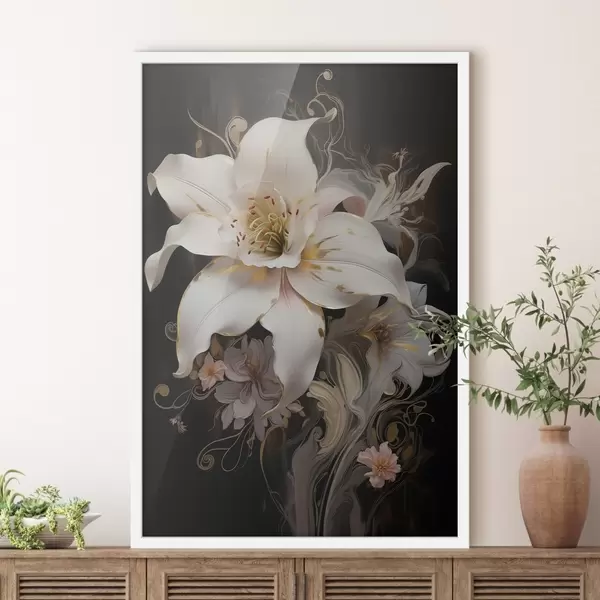 Poster Nahaufnahme abstrakte Lilie Blume auf einem dunklen Hintergrund f43254