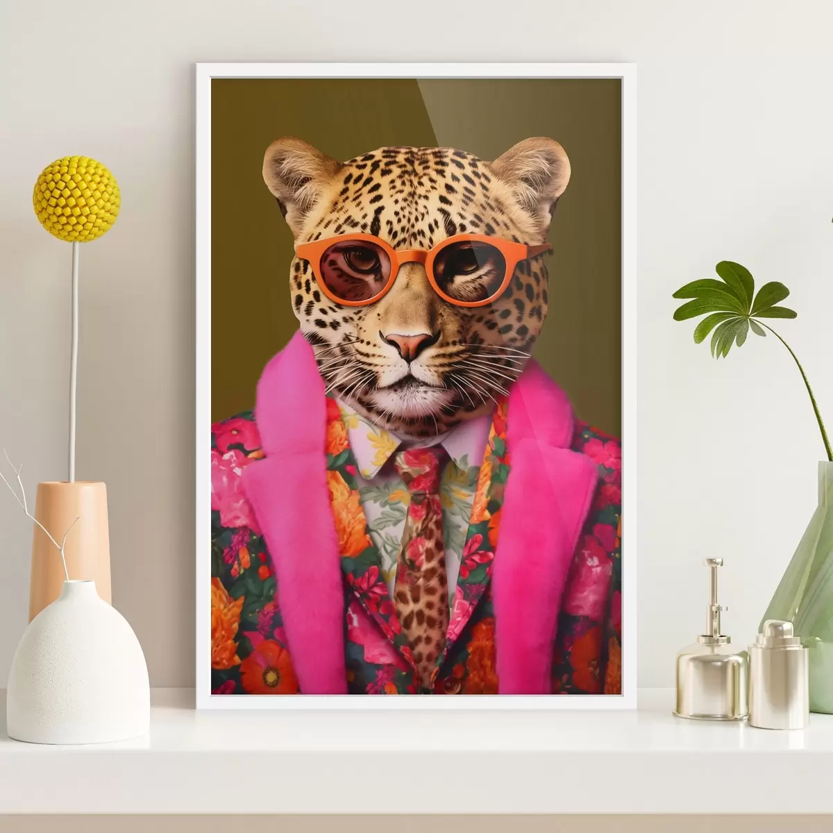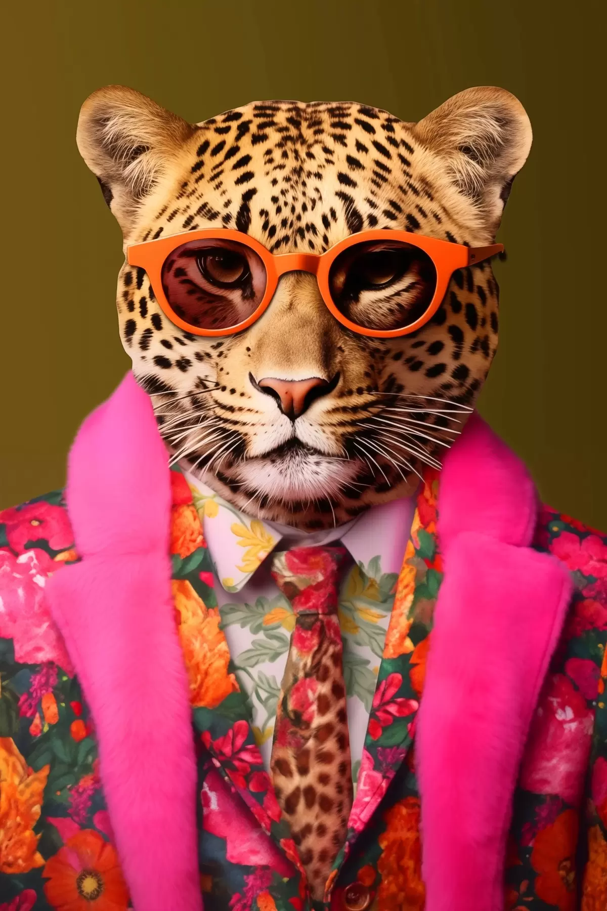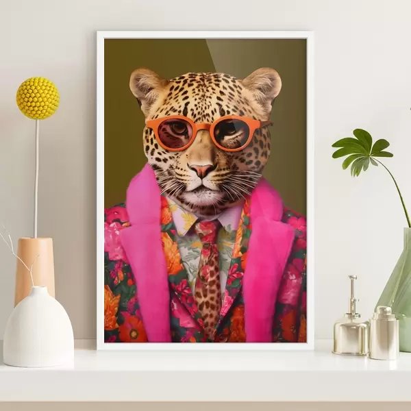 Poster Stilvoller Leopard im Blumenkostüm f43267