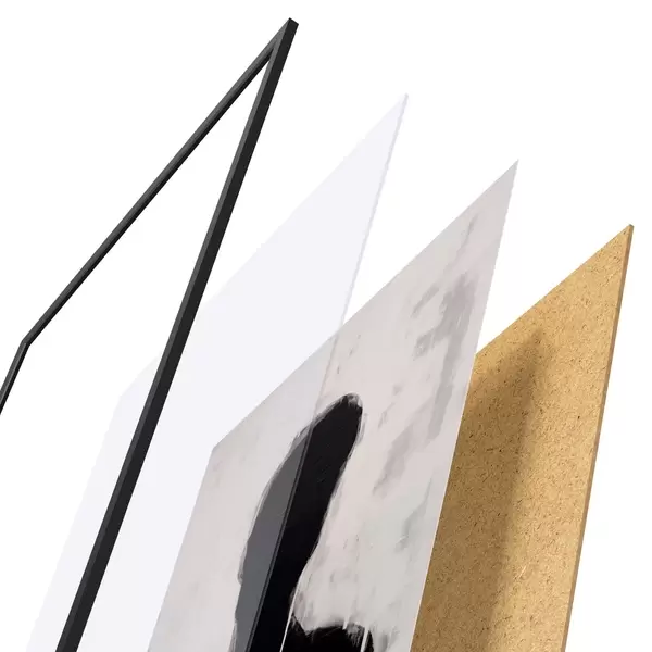 Das Poster besteht aus einem Rahmen, Plexiglas, einem gedruckten Bild und einer Rückwand aus Spanplatten. Dank der Halterungen auf der Rückseite kann das Poster sofort an die Wand gehängt werden.