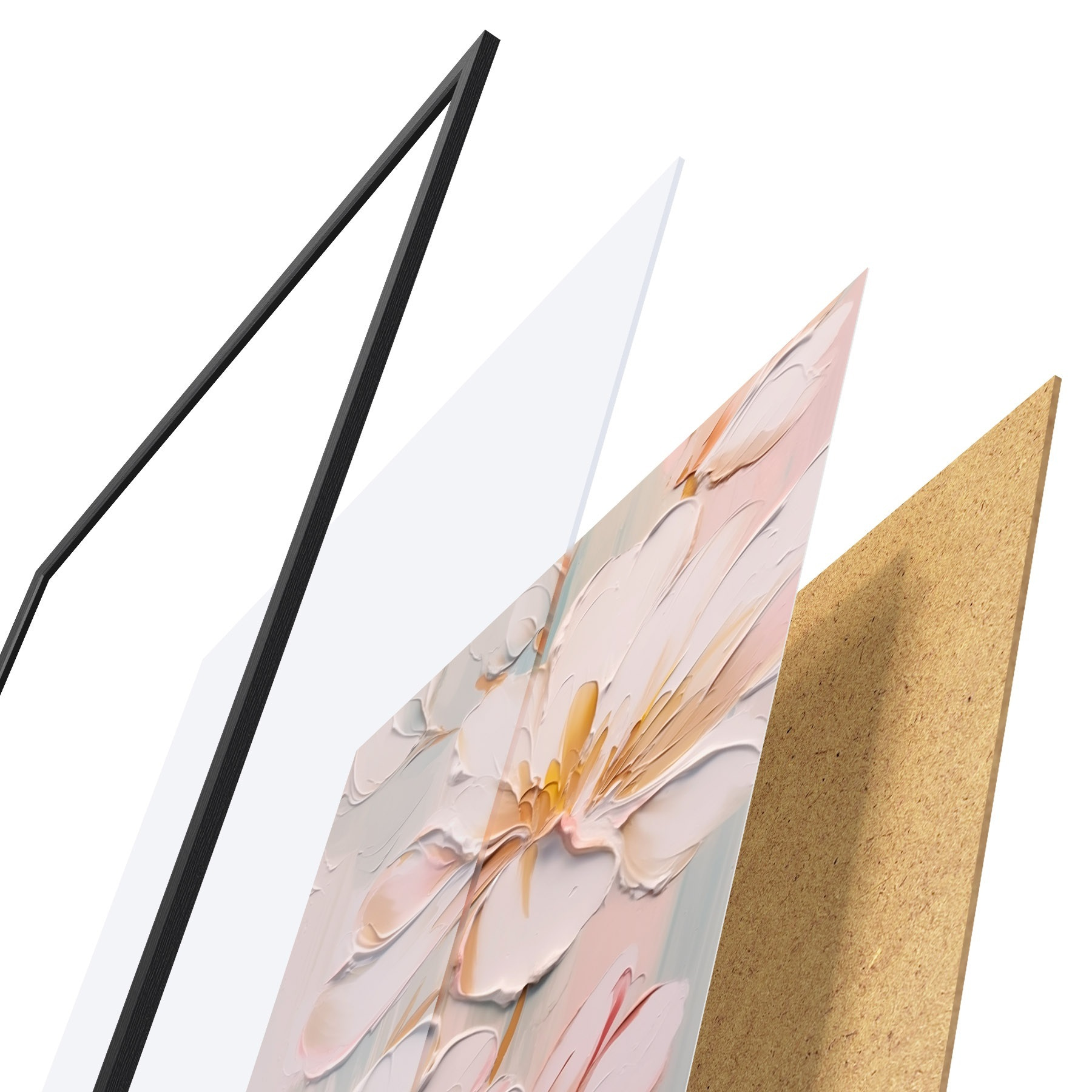 Das Poster besteht aus einem Rahmen, Plexiglas, einem gedruckten Bild und einer Rückwand aus Spanplatten. Dank der Halterungen auf der Rückseite kann das Poster sofort an die Wand gehängt werden.