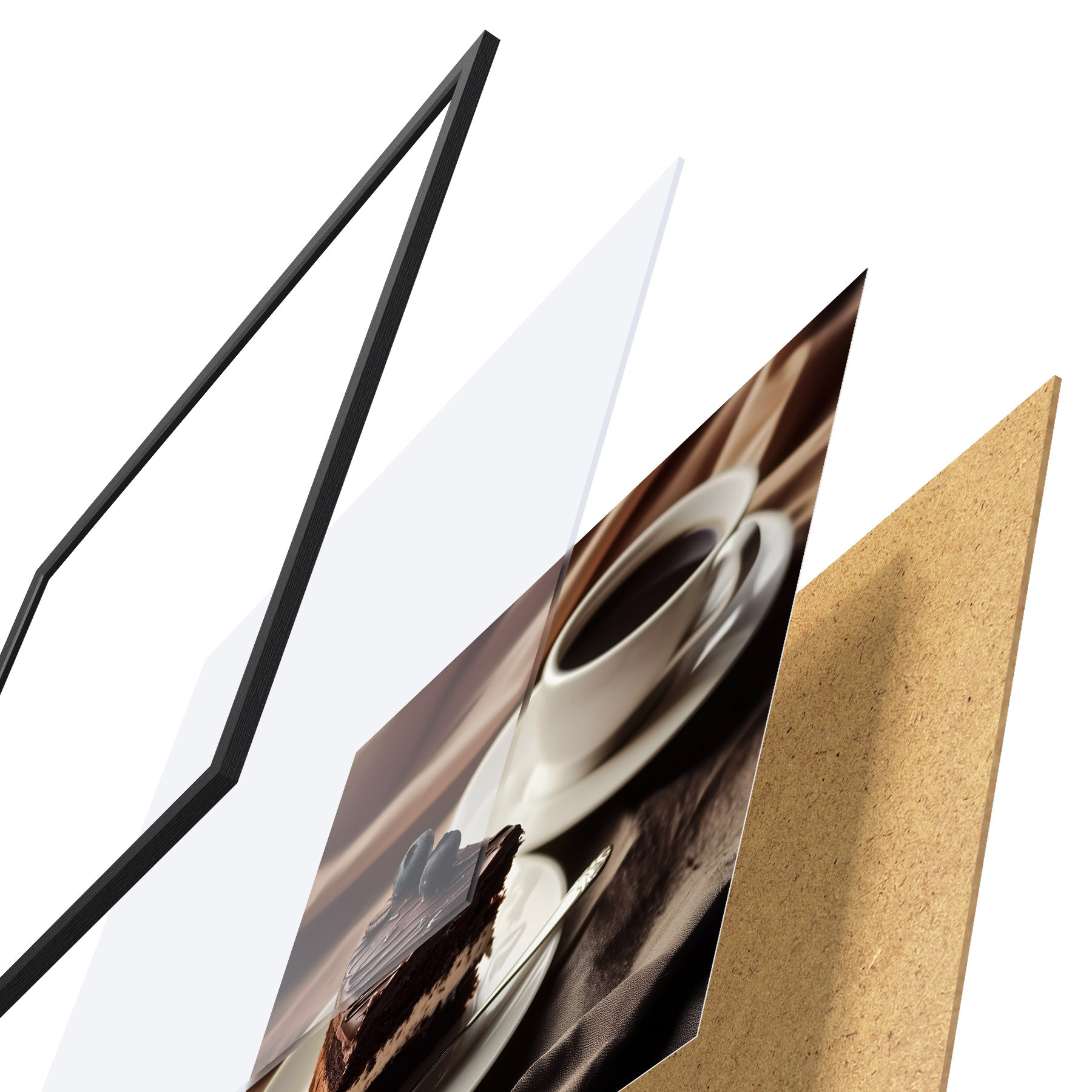 Das Poster besteht aus einem Rahmen, Plexiglas, einem gedruckten Bild und einer Rückwand aus Spanplatten. Dank der Halterungen auf der Rückseite kann das Poster sofort an die Wand gehängt werden.