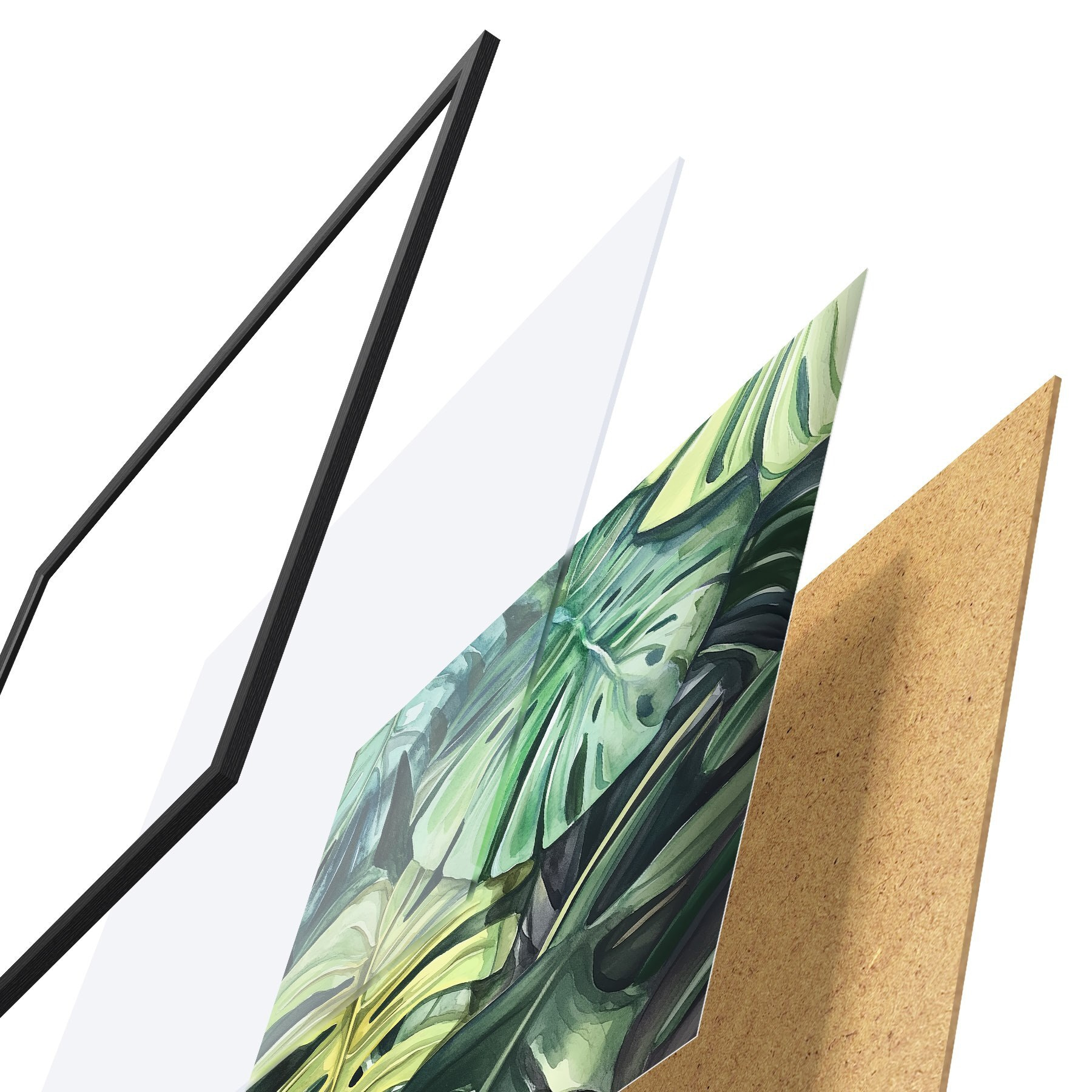 Das Poster besteht aus einem Rahmen, Plexiglas, einem gedruckten Bild und einer Rückwand aus Spanplatten. Dank der Halterungen auf der Rückseite kann das Poster sofort an die Wand gehängt werden.