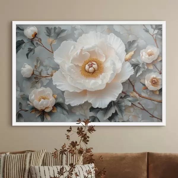 Poster Wunderschöne Pfingstrose vor einem Hintergrund aus Blättern und kleinen Pfingstrosen Nr f43315