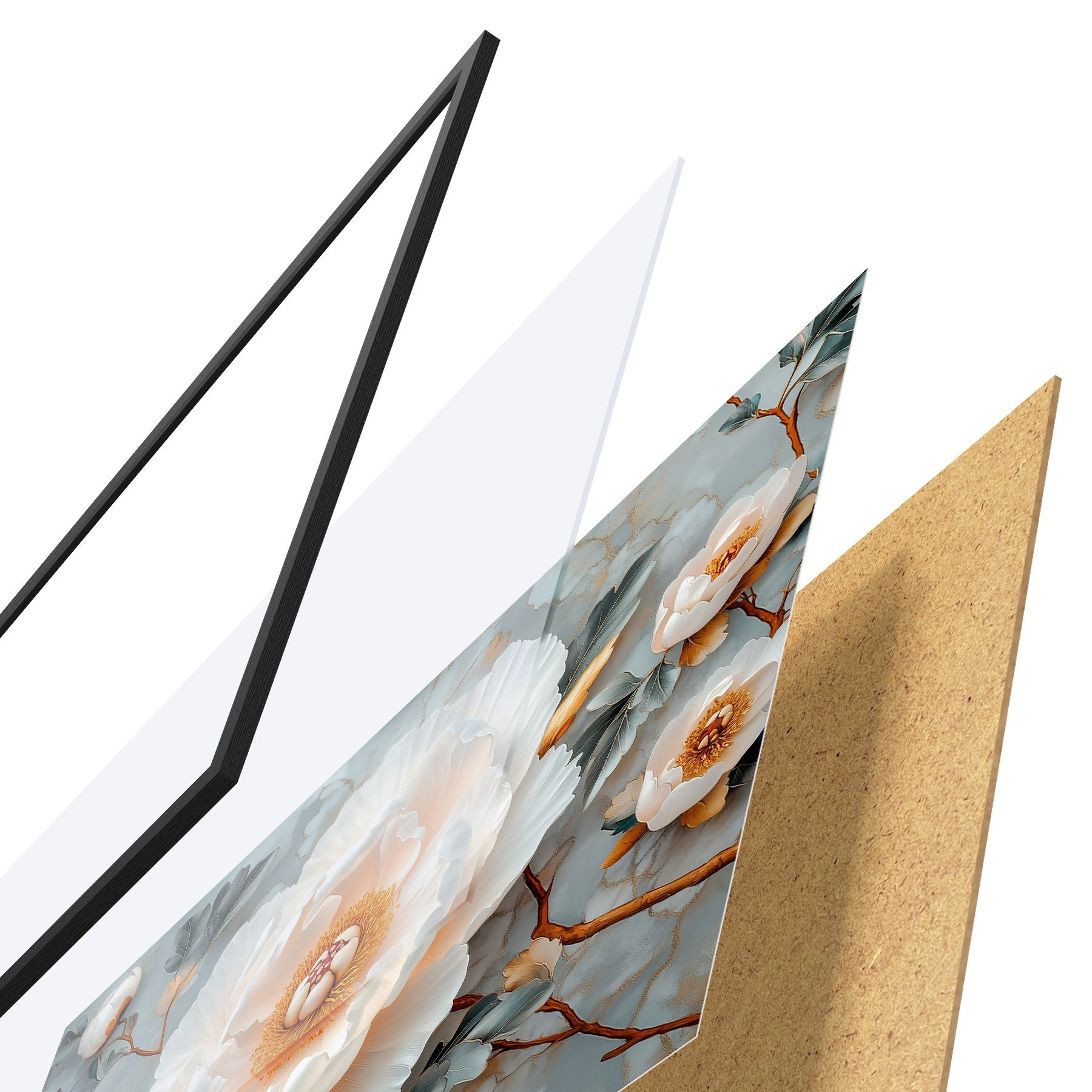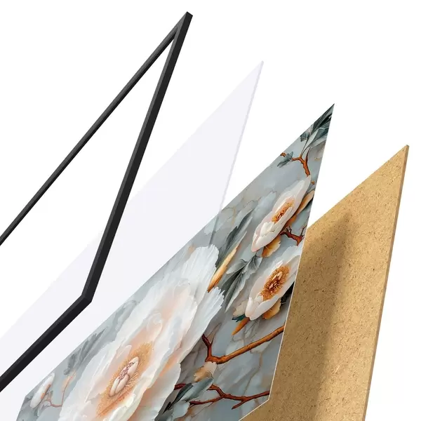 Das Poster besteht aus einem Rahmen, Plexiglas, einem gedruckten Bild und einer Rückwand aus Spanplatten. Dank der Halterungen auf der Rückseite kann das Poster sofort an die Wand gehängt werden.