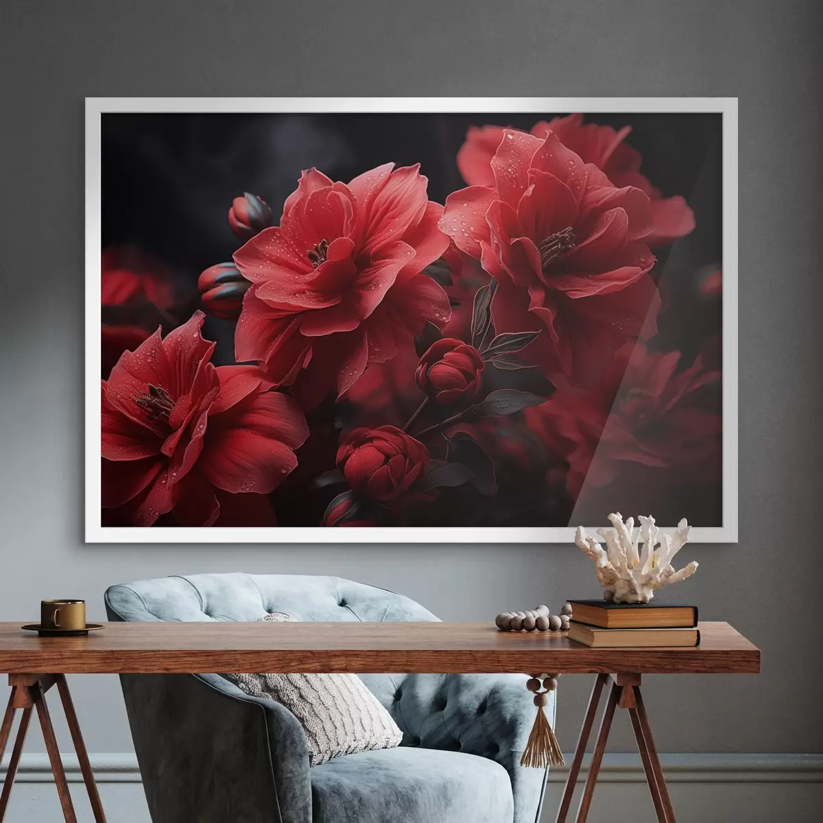 Poster Rote Blumen auf dunklem Hintergrund f43318