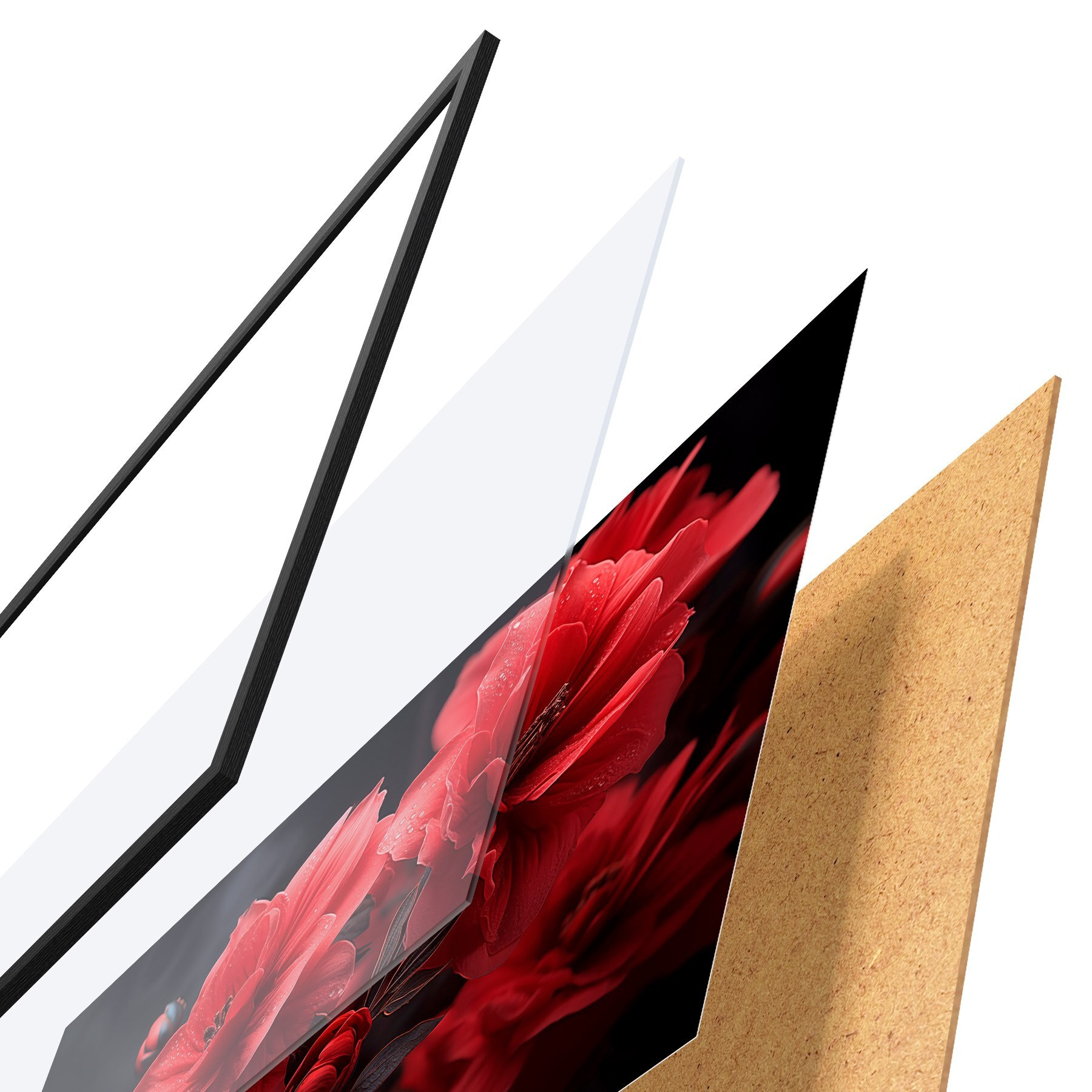 Poster Rote Blumen auf dunklem Hintergrund Nr f43318