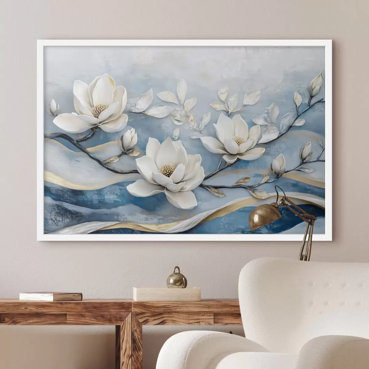 Poster Magnolienzweig auf einem abstrakten blau-gelben Hintergrund Nr f43323