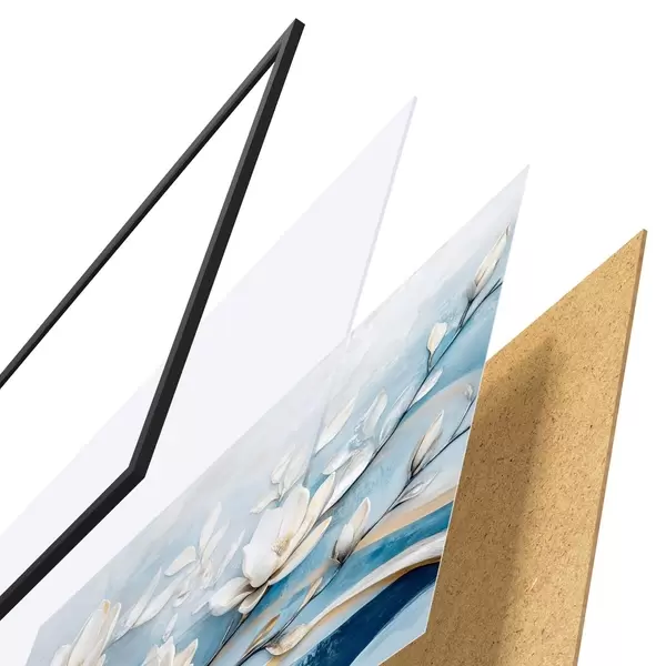 Das Poster besteht aus einem Rahmen, Plexiglas, einem gedruckten Bild und einer Rückwand aus Spanplatten. Dank der Halterungen auf der Rückseite kann das Poster sofort an die Wand gehängt werden.