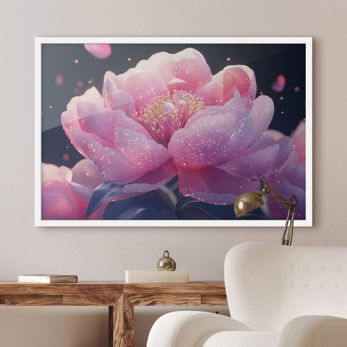 Poster Große zartrosa Blüte mit Sonnenstrahlen f43327