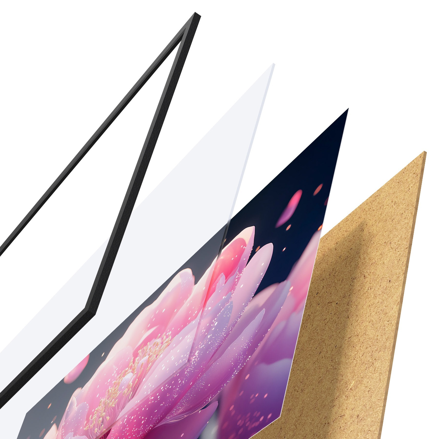 Das Poster besteht aus einem Rahmen, Plexiglas, einem gedruckten Bild und einer Rückwand aus Spanplatten. Dank der Halterungen auf der Rückseite kann das Poster sofort an die Wand gehängt werden.