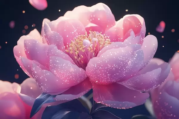Poster Große zartrosa Blüte mit Sonnenstrahlen Nr f43327