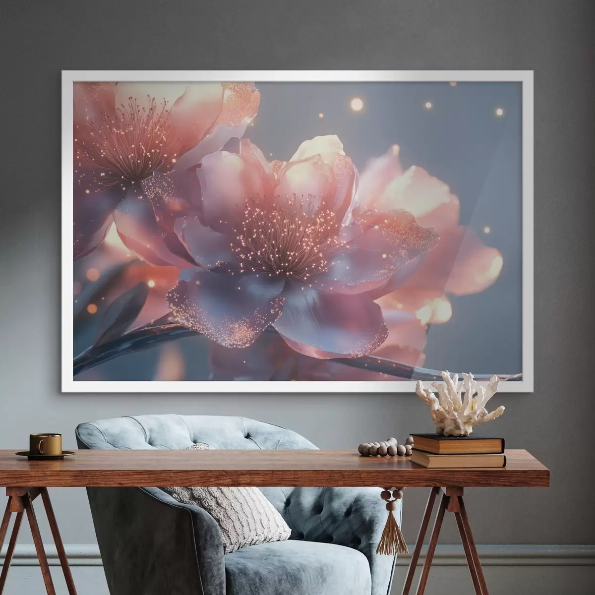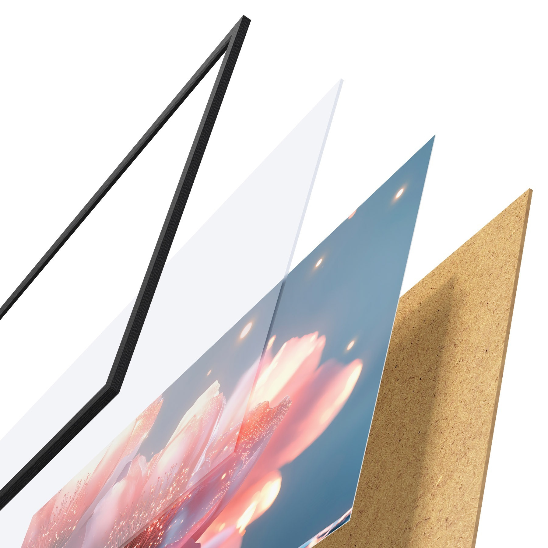 Poster Magische rosa Blume mit Sonnenstrahlen Nr f43328