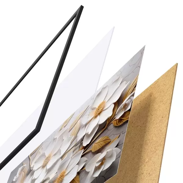 Das Poster besteht aus einem Rahmen, Plexiglas, einem gedruckten Bild und einer Rückwand aus Spanplatten. Dank der Halterungen auf der Rückseite kann das Poster sofort an die Wand gehängt werden.