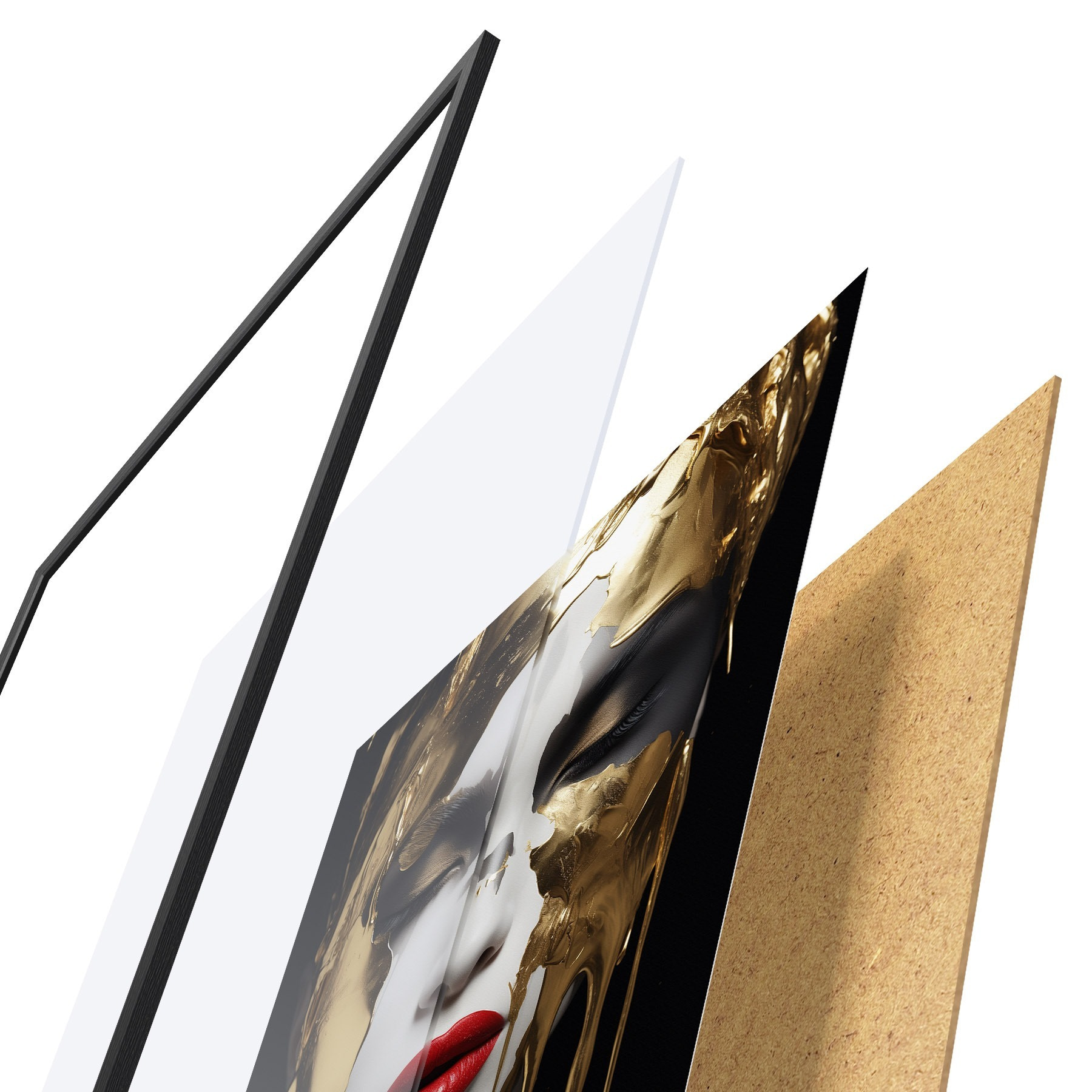 Das Poster besteht aus einem Rahmen, Plexiglas, einem gedruckten Bild und einer Rückwand aus Spanplatten. Dank der Halterungen auf der Rückseite kann das Poster sofort an die Wand gehängt werden.