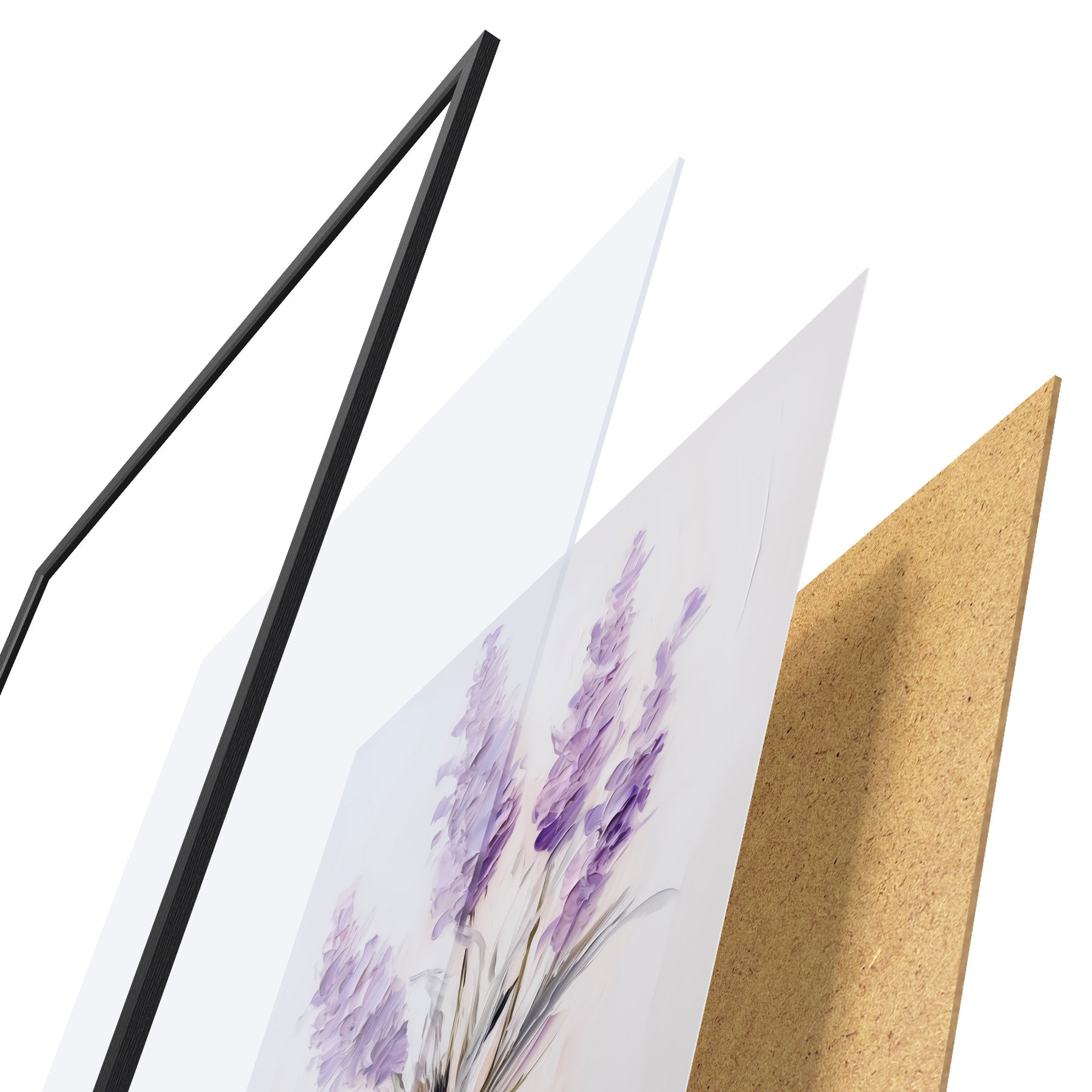 Das Poster besteht aus einem Rahmen, Plexiglas, einem gedruckten Bild und einer Rückwand aus Spanplatten. Dank der Halterungen auf der Rückseite kann das Poster sofort an die Wand gehängt werden.