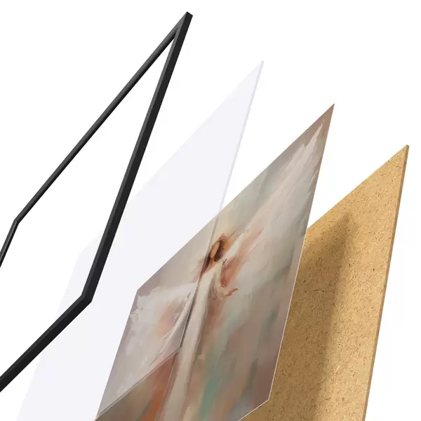 Das Poster besteht aus einem Rahmen, Plexiglas, einem gedruckten Bild und einer Rückwand aus Spanplatten. Dank der Halterungen auf der Rückseite kann das Poster sofort an die Wand gehängt werden.