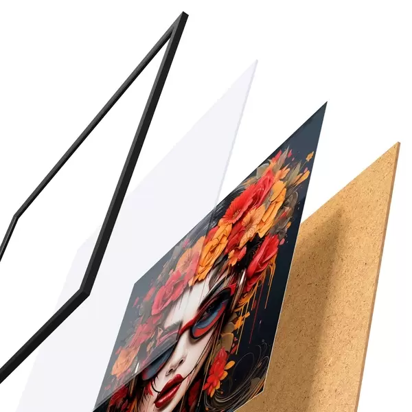 Das Poster besteht aus einem Rahmen, Plexiglas, einem gedruckten Bild und einer Rückwand aus Spanplatten. Dank der Halterungen auf der Rückseite kann das Poster sofort an die Wand gehängt werden.