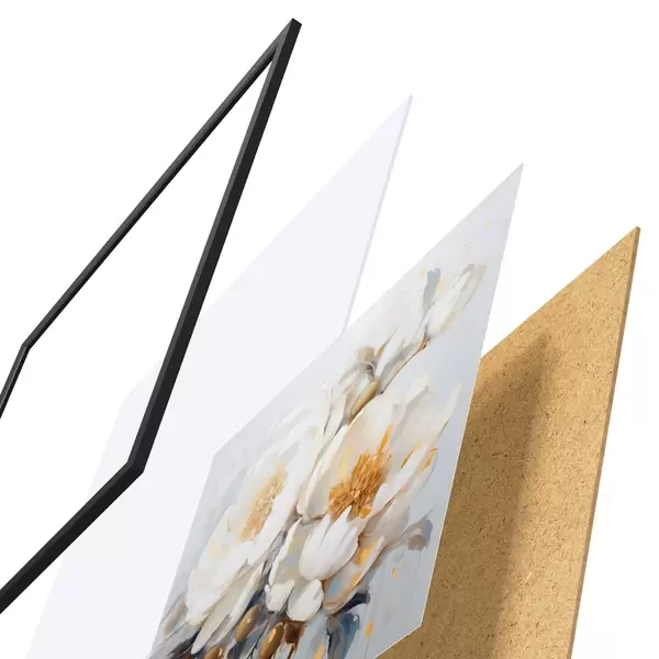 Das Poster besteht aus einem Rahmen, Plexiglas, einem gedruckten Bild und einer Rückwand aus Spanplatten. Dank der Halterungen auf der Rückseite kann das Poster sofort an die Wand gehängt werden.